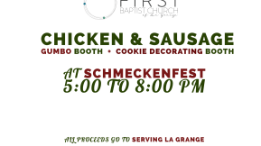 We will be at Schmeckenfest on the Square serving up our County Famous Gumbo. Our Children's Ministry will also be there with a Cookie Decorating...